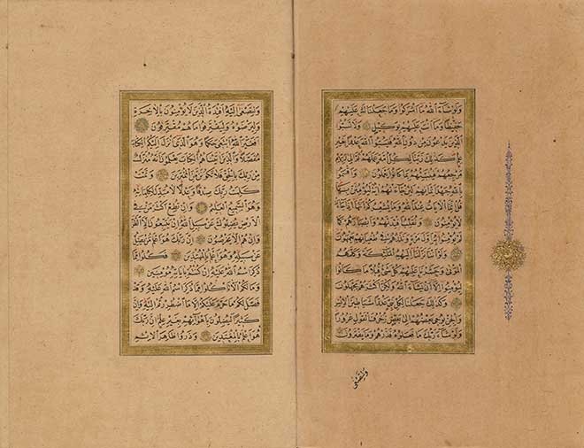 Resim 2: Şevkı Efendi'nin 1294/1877 târihli mushafından iki sahîfe.