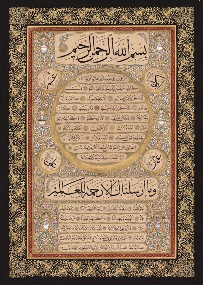 Resim 5: Şevkı Efendi'nin muhakkak-sülüs-nesih hatlarıyla bir hilyesi.