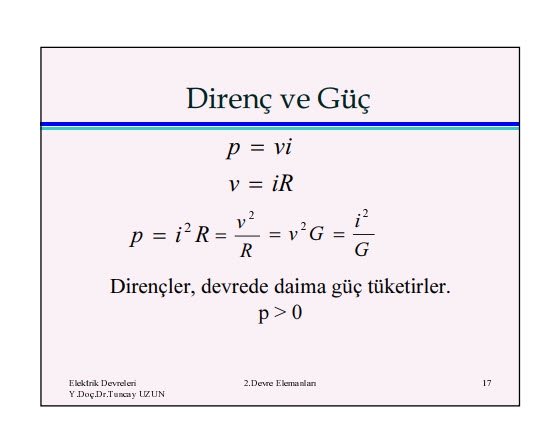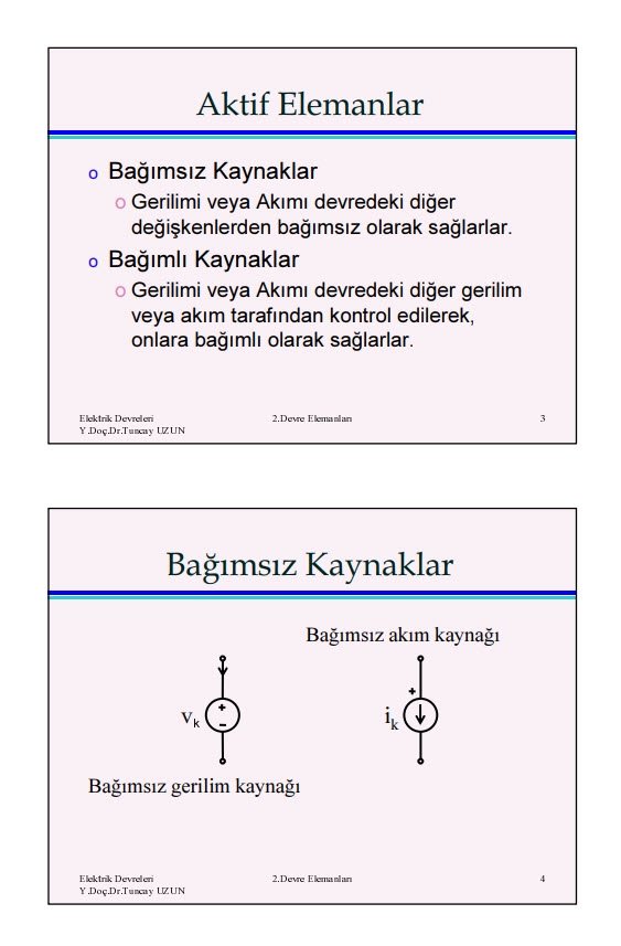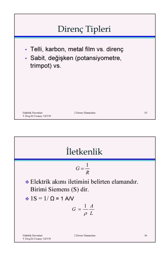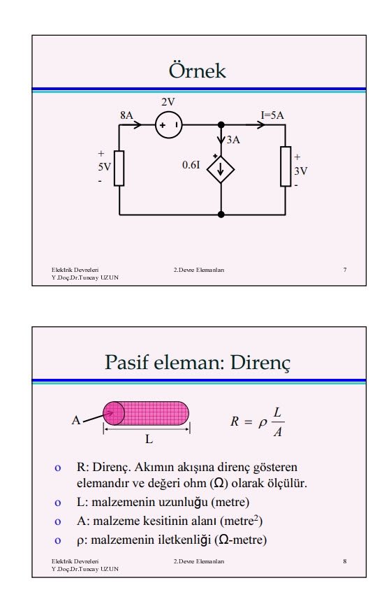 Yıldız Teknik Üniversitesi, Elektrik Elektronik Fakültesi, Yrd. Doç. Dr. Tuncay Uzun'un "Devre Elemanları" ders notlarına sitemizden ulaşabilirsiniz.