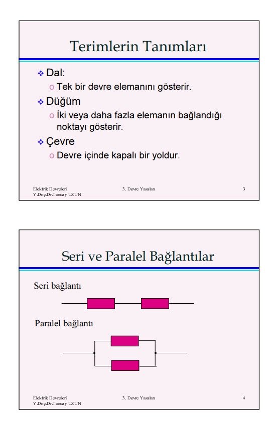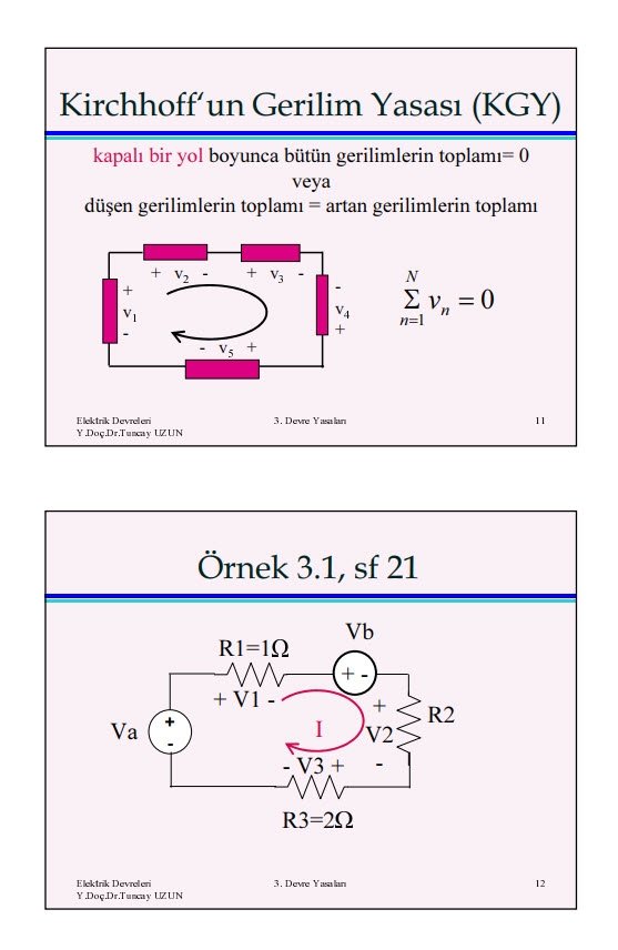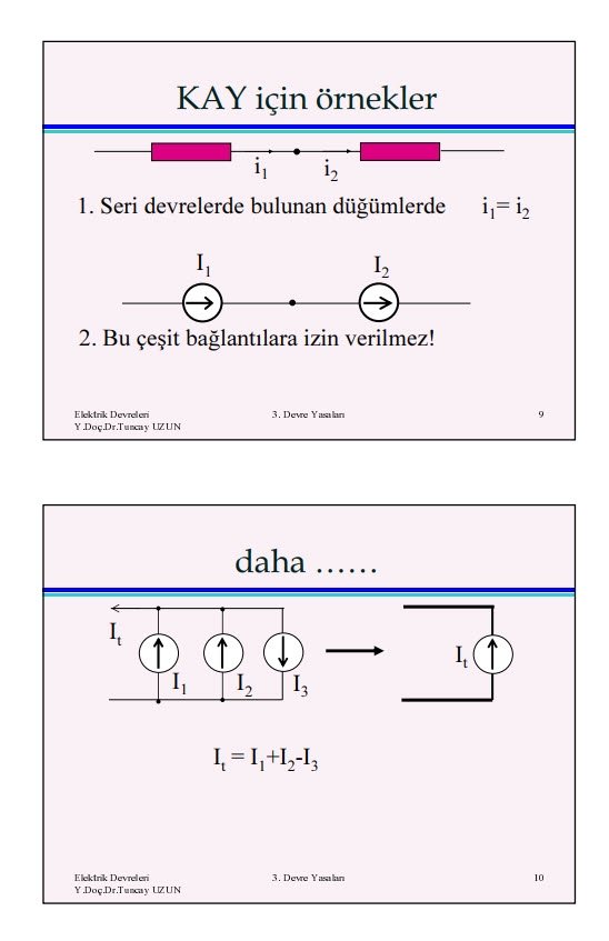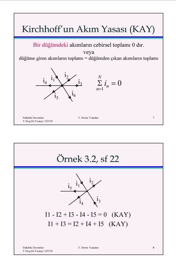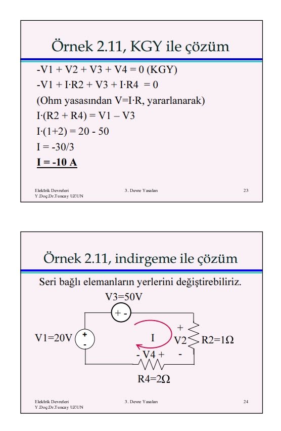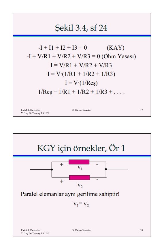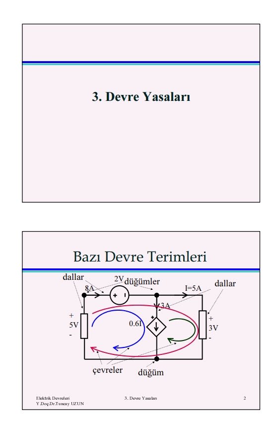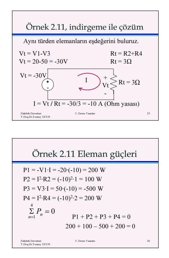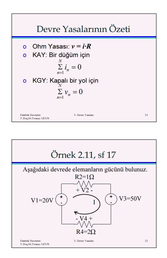 Yıldız Teknik Üniversitesi, Elektrik Elektronik Fakültesi, Yrd. Doç. Dr. Tuncay Uzun'un "Devre Yasaları" ders notlarına sitemizden ulaşabilirsiniz.