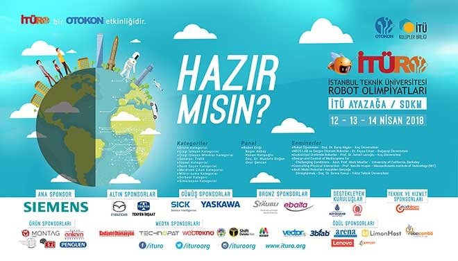Kontrol ve Otomasyon Kulübü tarafından 12-13-14 Nisan 2018'de 12.si düzenlenecek olan İTÜ Robot Olimpiyatları, 10 farklı yarışma kategorisi, yerli ve yabancı, alanında uzman hocaların seminerleri, panel ve atölye çalışmaları ile bu sene de akademi-endüstri-öğrenci işbirliğini sağlıyor ve robotik alanında uluslararası sahada yapılan çalışmaları bir araya getiriyor.