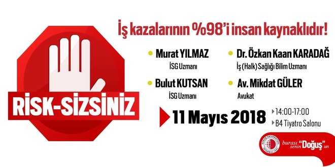 MYO İnşaat Teknolojisi Programı ve İş Sağlığı ve Güvenliği Programının ortaklaşa gerçekleştirdiği “Risk-sizsiniz” semineri 11 Mayıs 2018 Cuma 14:00’da Doğuş Üniversitesi, 4B Tiyatro Salonu’nda yapılacak.