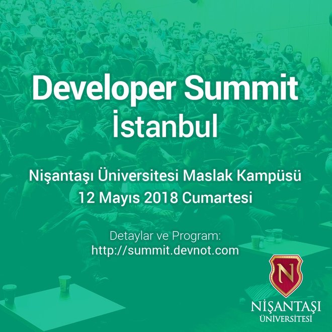 Türkiye'nin en önemli yazılım geliştirici konferanslarından biri olan Developer Summit İstanbul, 12 Mayıs Cumartesi günü Nişantaşı Üniversitesi Maslak 1453 NeoTech Kampüs'te düzenlenecek. Yazılım sektörünün önde gelen birçok isminin konuşmacı olarak yer alacağı, 3 farklı salonda 20'den fazla sunumun yapılacağı etkinlikte yazılım dünyasındaki son gelişmeler ve popüler konular ele alınacak. Cloud teknolojileri, IoT, yapay zeka, machine learning, devops, yazılım kalitesi ve yazılım testi gibi konularda sunumlar gerçekleştirilecek.