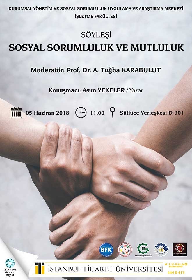 İstanbul Ticaret Üniversitesi İşletme Fakültesinde "Sosyal Sorumluluk ve Mutluluk" üzerine söyleşi gerçekleştirilecek.