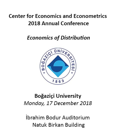 CEE 2018 yıllık Konferansı: Dağıtım Ekonomisi, 17 Aralık 2018 Pazartesi günü Natuk Birkan Binası'nda, Boğaziçi Üniversitesi'nde İbrahim Bodur Oditoryumu'nda gerçekleşecek.