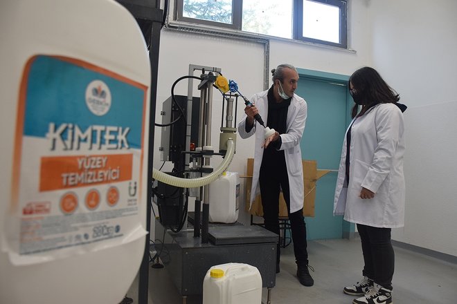 Ar-Ge merkezi ilan edilen ve 1180 metrekarelik alanda pilot üretim tesisi kurulan okulda öğrencilerce son 1 ayda 150 ton temizlik malzemesi üretildi.