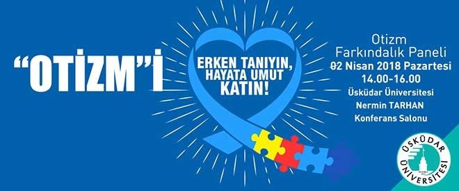 Üsküdar Üniversitesi'nce hazırlanan olan Otizm Farkındalık Paneli, 2 Nisan 2018 tarihinde, saat 14:00-16:00 saatleri arasında, üniversitenin Nermin Tarhan Konferans Salonu'nda gerçekleşecek.