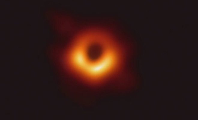 Fotoğrafta, yoğun bir parlaklığa sahip "ateş çemberi"nin çevrelediği tam yuvarlak bir kara delik görülüyor. Bu parlaklığa, kızgın gazların deliğe düşmesi neden oluyor.