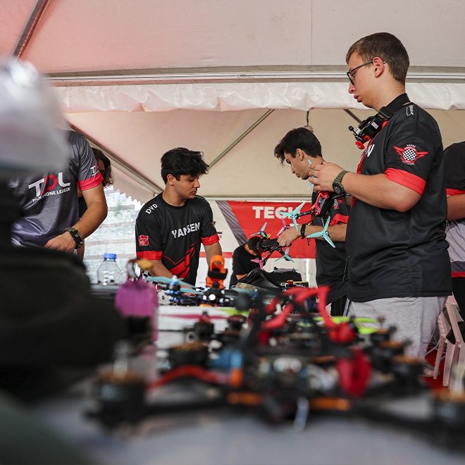 Yarışlar ve etkinlikler tüm gün sürerken 200 kilometre hıza 1 saniyede çıkan dronlar, final yarışlarını akşam saatlerinde LED'lerle özel olarak ışıklandırılmış, 1000 metrekarelik güvenlik fileleriyle çevirili, 12 engel ve 11 dönüşten oluşan toplam 3 bin metrekare üzerine kurulu pisti en önde tamamlamak için kıyasıya yarışacak.