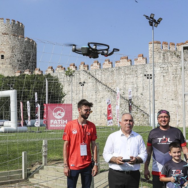Açılışını yaptığı etkinlikte dron uçuran Fatih Belediye Başkanı Ergün Turan, İstanbul'un tarihi ve önemli bir mekanında önemli bir faaliyette bulunduklarını belirterek iki gün süresince dron yarışlarının yapılacağını söyledi.