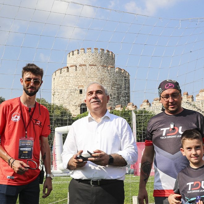 Fatih Belediyesi ve Tech Drone League'nin ev sahipliğinde düzenlenen dron yarışması, Yedikule Hisarı'nda başladı.