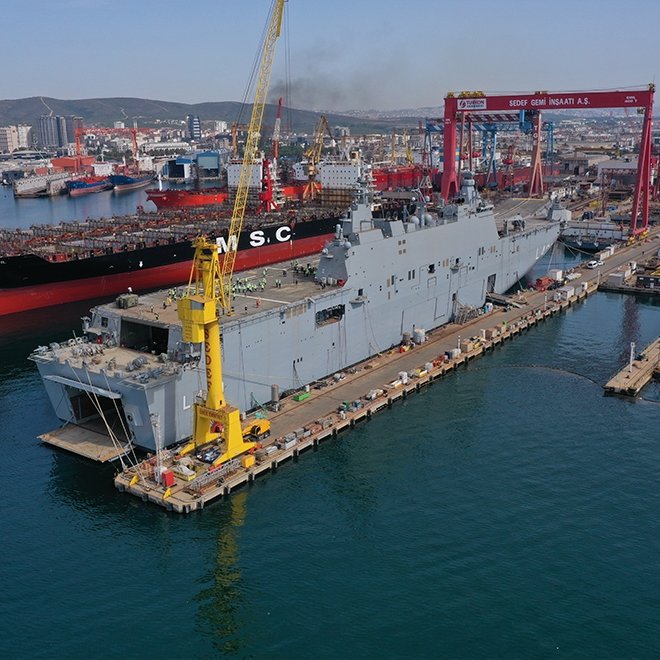 Cumhurbaşkanı Recep Tayyip Erdoğan'ın talimatıyla Savunma Sanayii Başkanlığı tarafından Deniz Kuvvetleri Komutanlığı'nın ihtiyaçları doğrultusunda 2015 yılında başlatılan Çok Maksatlı Amfibi Hücum Gemisi Projesi'nde son testler gerçekleştiriliyor. İstanbul Tuzla'daki Sedef Tersanesi'nin ana yükleniciliğinde inşa edilen geminin geldiği son aşamanın görüntülenmesi ve gelinen noktaya ilişkin bilgi verilmesi amacıyla basın toplantısı düzenlendi.