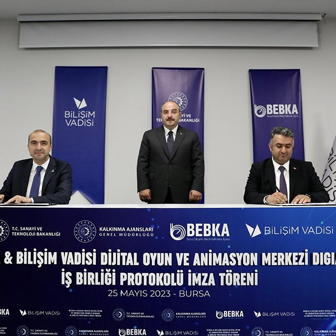 Bakan Varank, Bursa'nın genç nüfusuyla, üniversiteleriyle potansiyeli en yüksek şehirlerden olduğunu dile getirerek, "İnşallah Bursa'nın marka değerine de girişimcilik anlamında işte bunun gibi katkıları sunmaya devam edeceğiz. Ben bu imzanın hayırlı uğurlu olmasını diliyorum. Bugün atacağımız imzaların ikinci bir boyutu daha var. Türkiye'de teknoloji tabanlı girişimcilik, yazılım sektöründe ve oyun tasarımı sektöründe de oldukça başarılı. Türkiye'nin ilk unicornları ya da bizim tabirimizde milyar dolar değerlemeye ulaşan 'Turcorn'ları oyun sektöründen çıkmıştı. Türkiye'de bu manada farklı kümelenmeler yer alıyor. Farklı şehirlerimizin önemli kabiliyetleri var. Burada İstanbul, Eskişehir, Ankara oyun ve animasyon tasarımı geliştirilmesi noktasında önemli şehirlerimiz. İşte bu listeye önümüzdeki dönemde Bursa'yı da katmak istiyoruz." ifadesini kullandı.