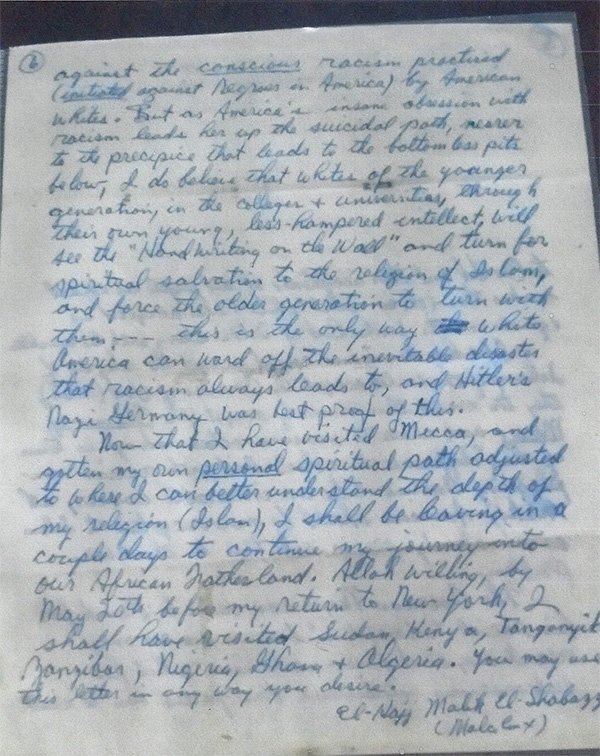ABD'de ırkçılıkla mücadelenin sembol ismi siyahi Müslüman lider Malcolm X, 26 Nisan 1964 tarihinde el yazısıyla bir mektup yazdı.