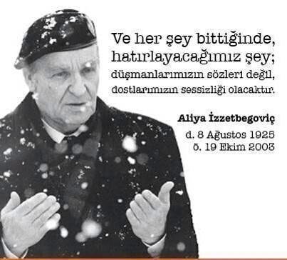 Balkan tarihinin son zamanlarına iz bırakmış büyük bir şahsiyet olan Aliya İzzetbegoviç Bosna Hersek'in unutulmaz lideri ve Müslüman dünyasının 'Bilge Kralı' olarak adlandırılan İzzetbegoviç, Bosna Savaşı'nda verdiği mücadele, İslam konusunda taviz vermeyen tavırlarıyla hem kendi yaşadığı coğrafyasının da hem de Müslüman dünyasının unutulmaz lideridir.