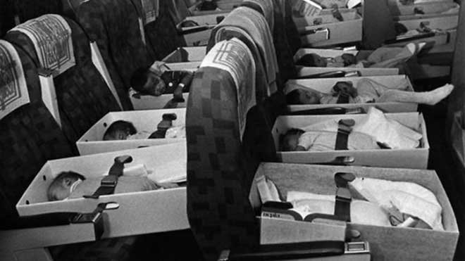 Yıl 1975. Bu fotoğraflar, Amerika’nın 20 yıl boyunca kana buladığı coğrafyalardan biri olan Güney Asya ülkesi Vietnam’dan. Savaşın son yılı. Çatışmalardan ve bombardımanlardan kurtularak hayatta kalabilmiş; ancak yetim kalmaktan kurtulamamış bebeklerle dolup taşan uçaklar, Amerika’nın “Operation Babylift” adını verdiği, “Bebek kurtarma/çalma operasyonu” ile ABD’ye, Avustralya’ya, Fransa’ya ve Kanada’ya gidiyorlar.