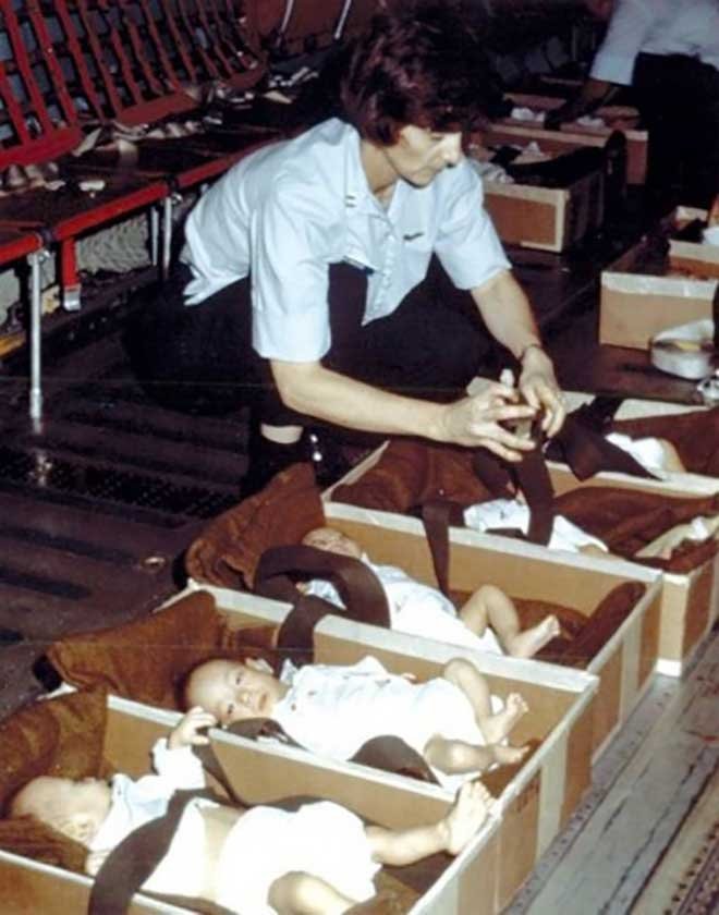 İlk Babylift uçuşunda, kargo kapağının açılması nedeniyle uçak düşüyor ve 78'i çocuk, 138 kişi yaşamını yitiriyor. Daha sonra gerçekleştirilen uçuşlarda, çocukların yaklaşık 2 bini ABD'ye, geri kalanı ise Avustralya, Fransa ve Kanada'ya götürülüyor.