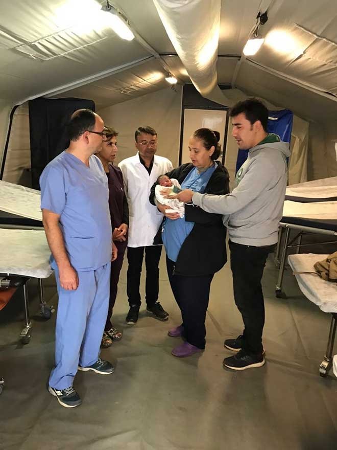 Sabaha karşı 01.00 civarında doğum yapan Begüm, 2 kilo 900 gram ağırlığında ve 48 santim boyunda bir erkek bebek dünyaya getirdi. "Muhammed Alperen" adı verilen bebek ve annesi bir süre müşahede altında tutulduktan sonra taburcu edildi. Muhammed bebek, Sağlık Bakanlığı bünyesinde AFAD tarafından koordine edilen hastanede dünyaya gelen ilk bebek oldu.