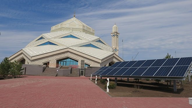Şehre yeni inşa edilen Irıskeldi Hac Camii, bahçesindeki güneş panelleri sayesinde hem kendi elektriğini üretiyor hem de Astana'nın elektrik ihtiyacının bir bölümünü karşılıyor!