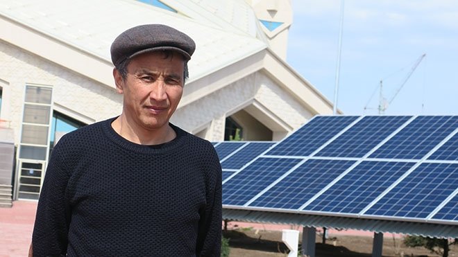 Kazakistan'ın başkenti Astana'da inşa edilen Irıskeldi Hac Cami, güneş panelleri sayesinde ihtiyacı olan elektriği karşılarken artan enerji de şehre dağıtılıyor.