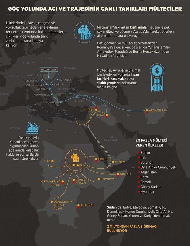 Ülkelerindeki savaş, çatışma, yoksulluk ve zorlu hayat koşulları nedeniyle evlerini terk etmek zorunda kalan mülteciler, sürekli ya da geçici olarak çıktıkları göç yolunda alternatif yol arayışı içinde her türlü zorbalık ve istismara maruz kalıyor.
