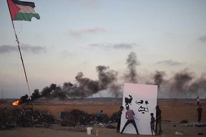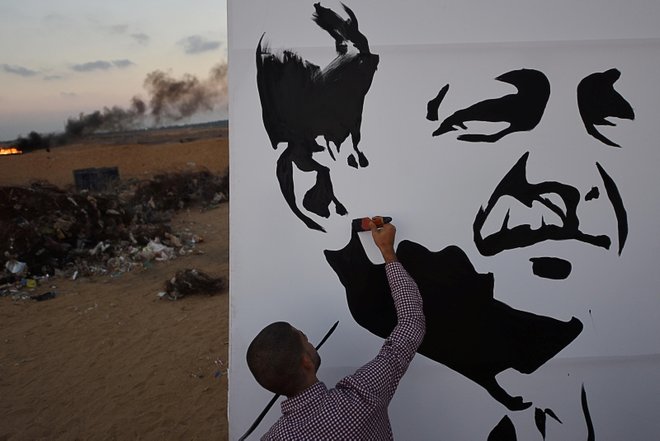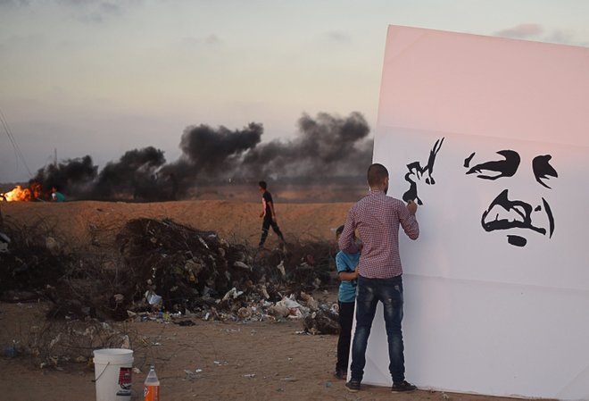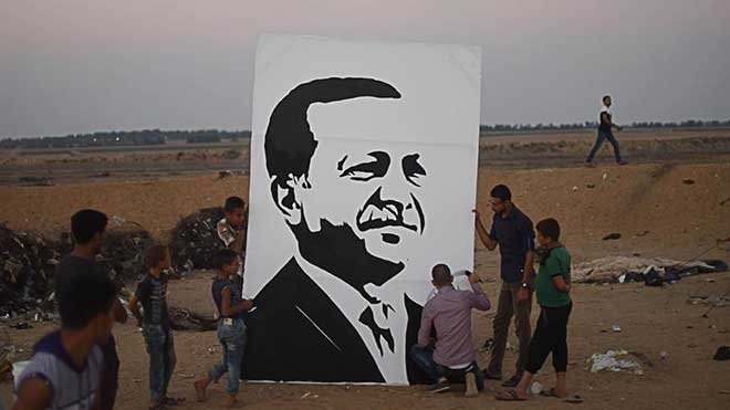 Filistinli ressam Beha el-Haribi (21), "Büyük Dönüş Yürüyüşü" gösterilerinin düzenlendiği Gazze'nin Han Yunus kenti doğusundaki İsrail sınırında Cumhurbaşkanı Recep Tayyip Erdoğan'ın portresini çizerek, Erdoğan'ın 24 Haziran seçimlerinde elde ettiği başarıyı kutladı.