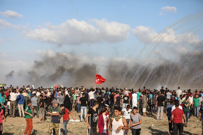 Gazze sınırında Filistinliler, Cumhurbaşkanı Recep Tayyip Erdoğan'ın seçimlerdeki başarısını ellerinde Türk bayrağı ve Erdoğan'ın fotoğrafını taşıyarak kutladılar.