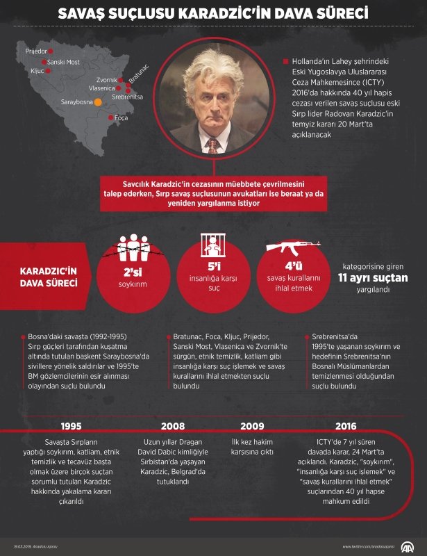 2016 yılında, Karadziç için 40 yıl olarak açıklanan cezanın, 20 Mart'ta ömür boyu hapse çevrilmesi sürpriz olmadı. 1992 de bağımsızlığını kazanan Bosna-Hersek'te, devlet içinde devlet gibi hareket eden ve Sırbistan'la alenen birleşme amaçlı ayrılıkçı politikalar izleyen Sırp yönetiminin, kurucu kadrosunun tamamı mahkûm olmuş oldu. Srebrenica gibi Bosna'nın birçok yerinde ve diasporada, soykırım kurbanlarının yakınları tarafından sevinçle karşılanan bu karar, dünya kamuoyunun genelinde de memnuniyetle karşılandı.