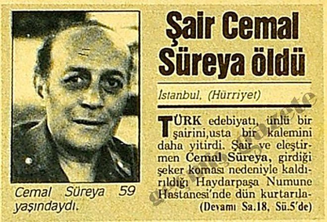 ''Cemal Süreya ölmüş diyorlar. İlahi azrail. Cemal Süreya ölür mü hiç!''