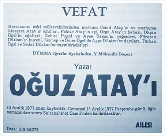 Yaşamdan geri kalmış yoksun kahramanların, hayata tutunamayanların yazarıydı o. Eserlerinde birey merkezli iç dünyasını, karmaşık bilinç yapısını esas aldı. Her eserinde kocaman bir oyun kurdu, önce kendi oynamaya başladı, sonra bizi oyuna soktu. Modern ya da modernist yaklaşımları romanlarında işleyen Türk yazarlarından birisiydi o. 'Tutunamamış' fakat ne olursa olsun bize ayakta kalmayı öğretmeye çalışmış usta yazar Oğuz Atay'ı, vefat yıldönümünde rahmetle anıyoruz.