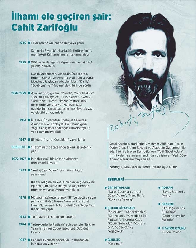 "İşaret Çocukları", "Yedi Güzel Adam", "Menziller" kitaplarının yazarı şair Cahit Zarifoğlu, vefatının 32. yılında anılıyor.
