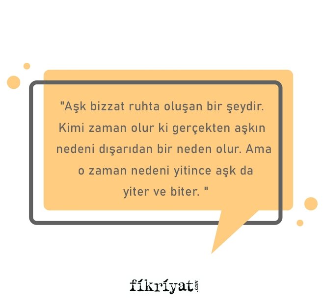 "Aşk bizzat ruhta oluşan bir şeydir. Kimi zaman olur ki gerçekten aşkın nedeni dışarıdan bir neden olur. Ama o zaman nedeni yitince aşk da yiter ve biter. "