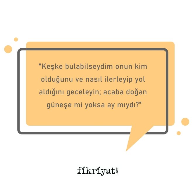 "Keşke bulabilseydim onun kim olduğunu ve nasıl ilerleyip yol aldığını geceleyin; acaba doğan güneşe mi yoksa ay mıydı?