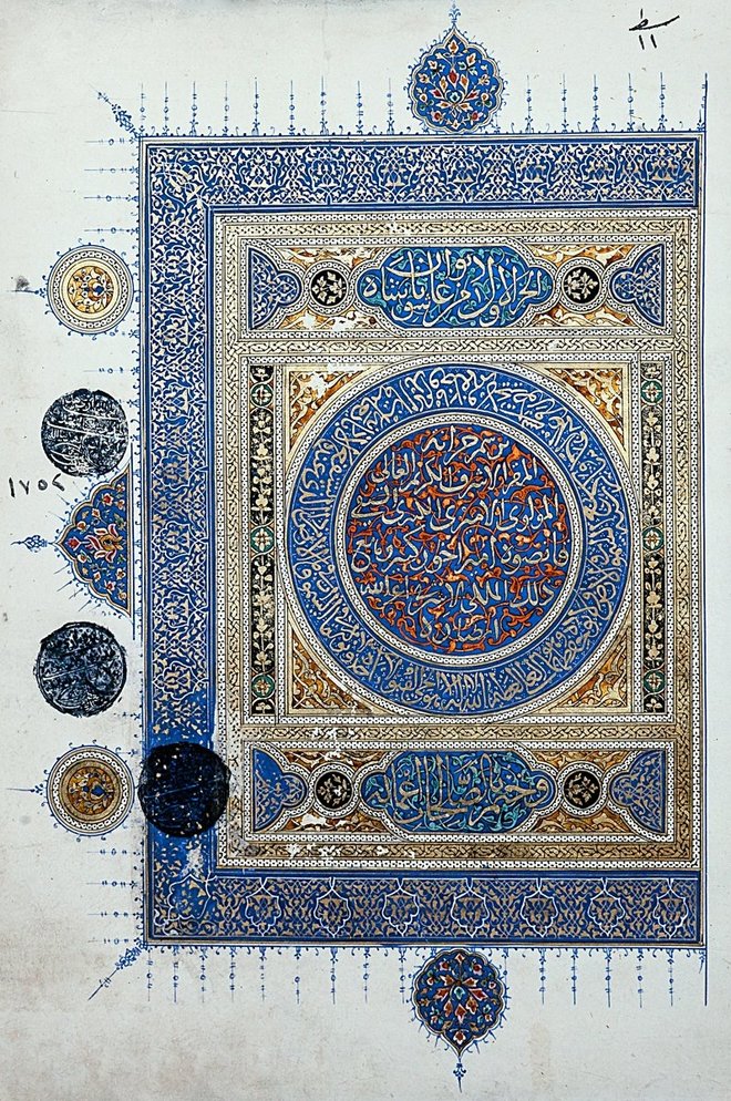 (x) Zahriyye: Yazma kitaplarda genellikle temellük kaydının tezhipli olarak yer aldığı, esas metnin başladığı yaprağın arka yüzü.