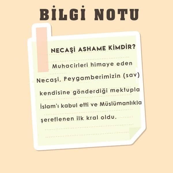 🔹Peygamber Efendimiz (sav), Mekkeli müşriklerin eziyetlerinden kaçarak hicret eden Müslümanlara iyi muamelede bulunan Habeş Necâşîsini daima hayırla yad etti. Hatta kralın oğlu Medine'ye geldiğinde, muhacirlere gösterdiği samimiyetin karşılığında vefa göstererek kendi elleriyle hizmet etti.