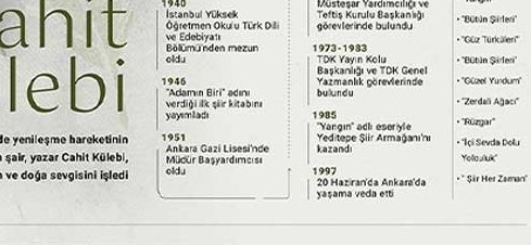 Cahit Külebi'nin ilk şiiri, okuduğu lisede hazırlanan "Toplantı" dergisinde yayımlandı.
