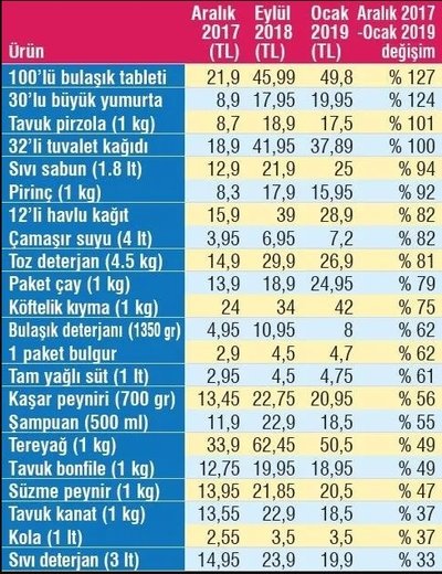 Yaptıkları zammın ancak yüzde 5'ini geri çeken marketlerin, Aralık 2017 ile Ocak 2019 arasında yüzde 70 fiyat artışı yaptığı görülüyor. Sebze, meyve, temizlik ve gıdadaki 25 ürün üzerinden marketlerde yapılan araştırmaya göre; Aralık 2017 ile Eylül 2018 arasındaki fiyat artışı yüzde 81 seviyesinde gerçekleşti. Özellikle temizlik ürünlerinde kur şoku dönemindeki zamlar yüzde 100'leri aştı. Sonrasında kurlardaki düşüş fiyatlara sınırlı yansıdı. Aralık 2017 ile Ocak 2019 arasında yüzde 70 fiyat artışı olduğu görüldü. Marketler enflasyonun çok üzerinde artışlara devam ederken, indirim akıllarına gelmiyor.