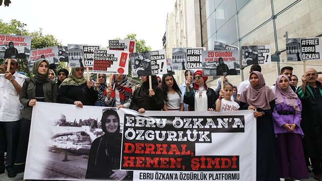Türk vatandaşı Özkan, üç günlük Kudüs ziyaretinin sonunda 11 Haziran'da İstanbul'a dönüşü öncesinde Tel Aviv'deki havalimanında İsrail polisi tarafından gözaltına alınmıştı. O tarihten bu yana Ebru Özkan'ın gözaltı süresi, İsrail mahkemeleri tarafından defalarca uzatıldı.