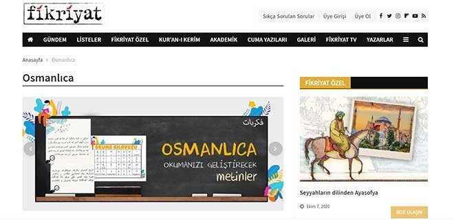 İslam'a dair hayata dokunan en doğru ve güvenilir ilmihal bilgileri, fikir hayatına yön veren yazı, özel dosya ve videolarıyla dijital medyada ayrıcalıklı bir yer edinen fikir ve düşüncenin referans sitesi Fikriyat.com, Osmanlıca dersleri gibi medeniyetimize dair eğitici ve öğretici yayınlarıyla, okurlarına zenginlik katan ayrıcalıklar sunuyor.