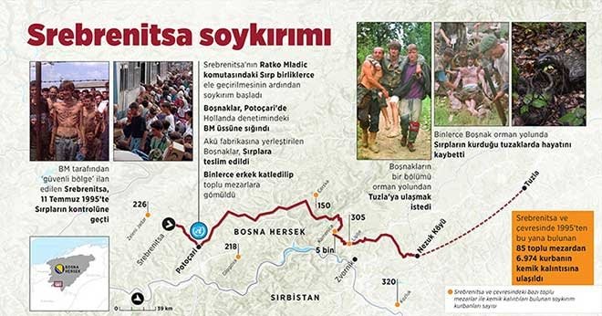 ◾ Hollandalı askerlere sığınmayıp orman yoluyla, Bosna ordusunun kontrolündeki bölgeye ulaşmak isteyen diğer Bosnalıların da kaderi ne yazık ki aynı oldu. Artık halk arasında "ölüm yolu" olarak da anılan orman yolundan giden binlerce Boşnak, Sırpların kurduğu pusularda, canavarca katledildiler.
