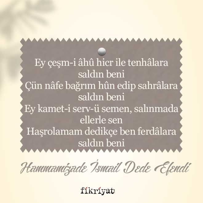 "Ey çeşm-i âhû hicr ile tenhâlara saldın beni