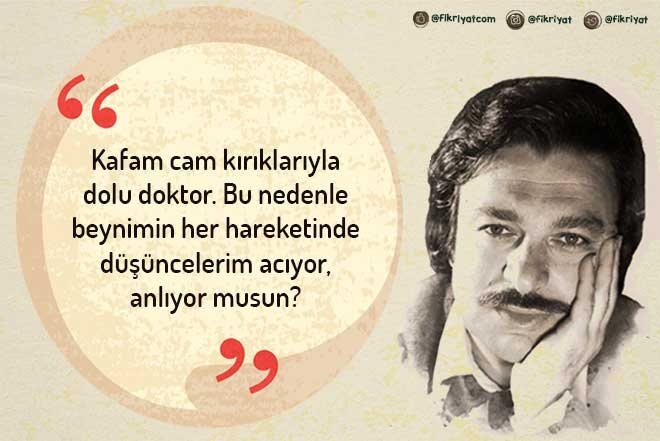 "Kafam cam kırıklarıyla dolu doktor. Bu nedenle beynimin her hareketinde düşüncelerim acıyor, anlıyor musun? Bütün hayatımca bu cam kırıklarını beyin zarımın üzerinde taşımak ve onları oynatmadan son derece hesaplı düşünmek zorundayım."