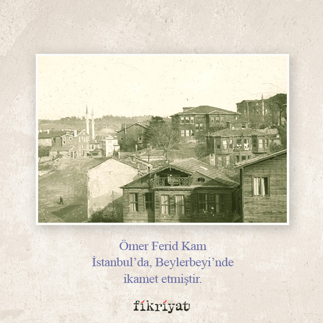 ◼ Ülkemizin fikri alandaki müstesna isimlerinden Ömer Ferit Kam 1864 yılında İstanbul, Beylerbeyi'nde dünyaya geldi. Babasının soyu "Delikurt Oğulları" olarak bilinen Çankırılı bir aileye dayanmaktaydı. Annesi Fâtıma Fitnat Hanım ise Çerkeçli Molla Kuzu ailesine mensuptu. Kam, kendini kurt ile kuzunun izdivacından doğan bir çocuk olarak görüyordu.