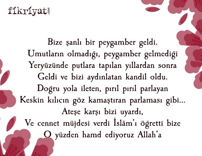 "Bize şanlı bir peygamber geldi.
