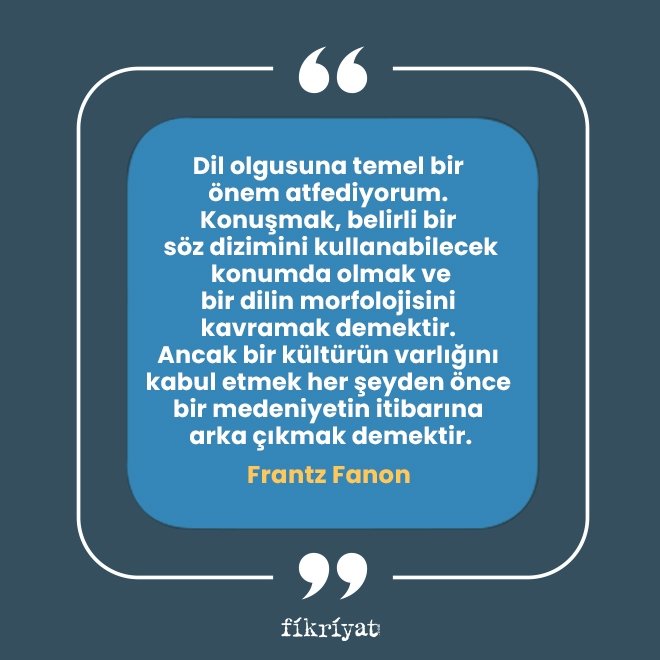 "Dil olgusuna temel bir önem atfediyorum. Konuşmak, belirli bir sözdizimini kullanabilecek konumda olmak ve bir dilin morfolojisini kavramak demektir. Ancak bir kültürün varlığını kabul etmek her şeyden önce bir medeniyetin itibarına arka çıkmak demektir."
