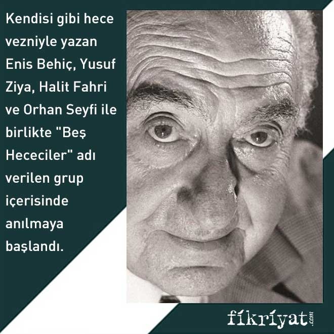 Faruk Nafiz, aynı yıllarda kendisi gibi hece vezniyle yazan Enis Behiç, Yusuf Ziya, Halit Fahri ve Orhan Seyfi ile birlikte "Beş Hececiler" adı verilen grup içerisinde anılmaya başlandı.