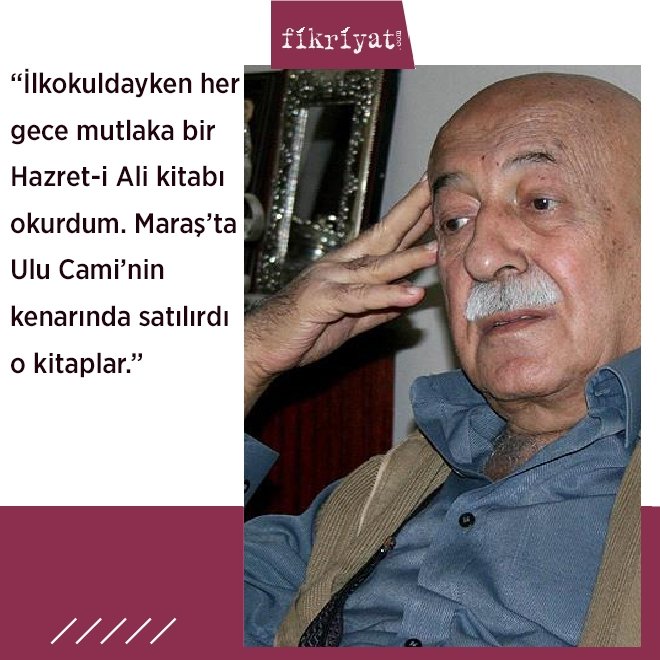 "İlkokuldayken her gece mutlaka bir Hazret-i Ali kitabı okurdum. Maraş'ta Ulu Cami'nin kenarında satılırdı o kitaplar. İlkokulda bir arkadaşım vardı, Hacı Elmas. Onunla beraber alır, değiş tokuş ederdik, yani masrafı yarıya bölmüş olurduk. Tabi ağlayarak okurduk. Dinî altyapım bu kitaplardan gelir. Ortaokulda Feridun Fazıl Tülbentçi'nin kitaplarını okumaya başladım ve ben ne kadar kitabı elime geçtiyse okumuşumdur. Sonra Nihal Atsız ve Abdullah Ziya Kozanoğlu ile tanıştık. Bozkurtlar Diriliyor'u, Barbaros Hayrettin'i, Oruç Reis'i falan okuduk. Tabi bu kitaplar çok heyecan verici kitaplardı. Benim tarih bilgim biraz da buralardan gelir. Şimdi düşünüyorum ve aslında çok da merak ediyorum, bu kitaplar nerede, hâlâ okunuyor mu, çocuklara veriliyor mu? Çünkü müthiş kitaplardı onlar. Mesela, M. Turhan Tan'ın Viyana Dönüşü adlı romanı müthiş bir kitaptır. Lise ikide ben klasikleri okumaya başladım. Ev ödevim, zannederim, Flaubert'ten Madame Bovary idi. Tabi ondan evvel, bende müthiş bir Rus romanı aşkı başlamıştı. Dostoyevski hayatımın içine girdi."
