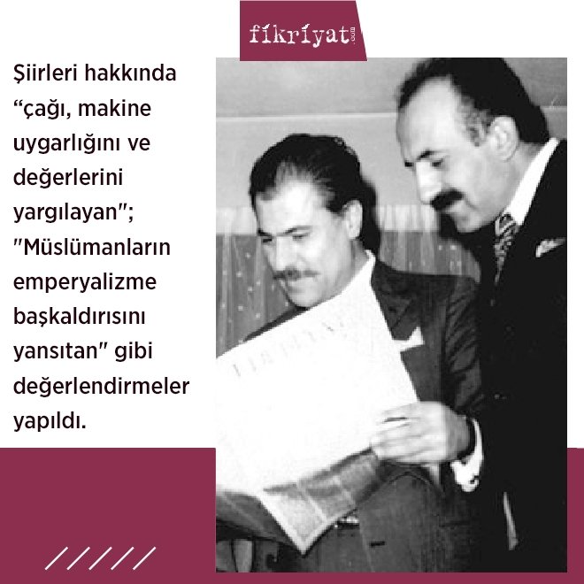 ◾ Ak Radyo'da "Şiir, Yalnızca Şiir" adlı bir program hazırlayıp sundu. Şiirleri hakkında "barbar güçlerin, teknolojinin yıktığı, Tanrı'dan kopardığı insanın mânevî kurtuluşunu arayan"; "çağı, makine uygarlığını ve değerlerini yargılayan"; "Müslümanların emperyalizme başkaldırısını yansıtan" gibi önemli değerlendirmeler yapıldı.