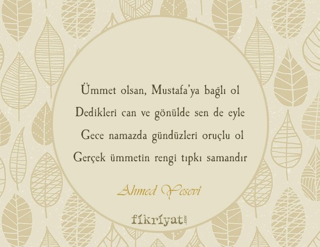 12. yüzyılda yaşamış olan Ahmed Yesevi, Peygamber Efendimize olan saygı ve hürmetinden, 63 yaşında "Resûl aleyhisselâm, bu yaşta dünyadan ayrılmışken benim yeryüzünde durmam onu sevmeye yakışmaz." diyerek yer altında kazdırdığı bir hücrede yaşamaya başladı. Bir yandan İslam'ın hükümlerini, tasavvuf esaslarını, adap ve erkânı öğretmeye çalışırken, bir yandan da İslam'ı insanlara sevdirdi. Ahmed Yesevî'nin 'hikmet' adlı şiirleri asırlar boyunca hafızamızda yer edindi. Sizler için Ahmet Yesevi'den 'hikmet' olarak adlandırılan şiirlerini derledik.