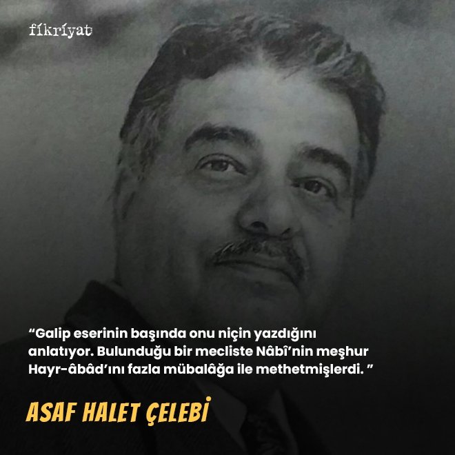 Hâlbuki zavallı ve büyük Galib'in yetiştiği devirde bile, üdebâ-yı kiram kırıntıları tarafından o bir dekadan ve rate addediliyordu. Çünkü bütün kusuru başkalarına benzememek, yeni bir çığır açmış olmaktı. Şiirleri müsamaha bilmez mukallitlerce tezyif ve tahkir ediliyordu."